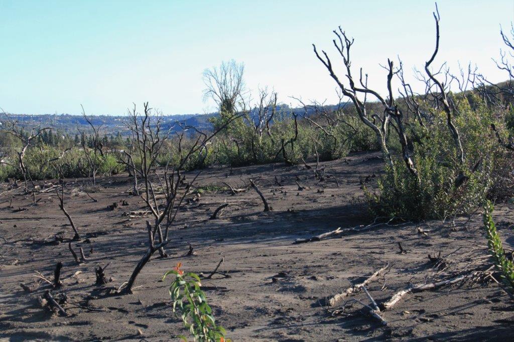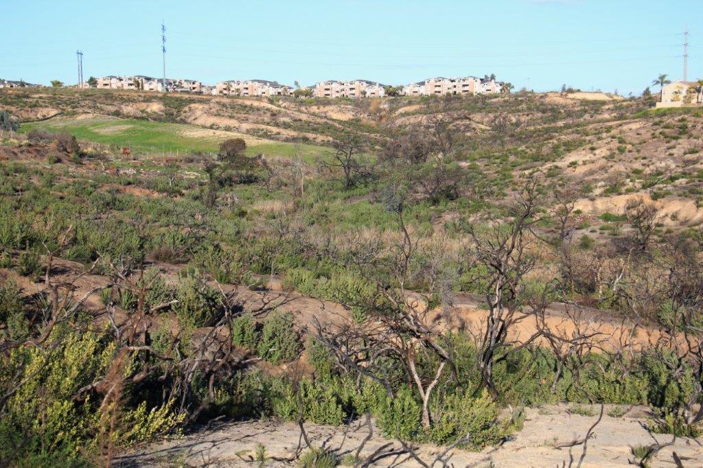 In May of 2014 a brush fire started at the edge of the La Costa Golf Course and the Santa Ana wind quickly spread it to 100 acres. Five homes, 18 apartments and a commercial building were destroyed. North County, where Carlsbad is located, had four other brush fires start in the next few couple of days. The fire was called the Poinsettia Fire due to its proximity to Poinsettia Lane. Along the trail we had walked our first week here to find geo-caches I said it looked like a fire had gone through recently; that was it. Property owners filed suit against the golf course for the damages claiming one of the staff or a golf club piece of equipment had started the fire. No idea how that turned out.