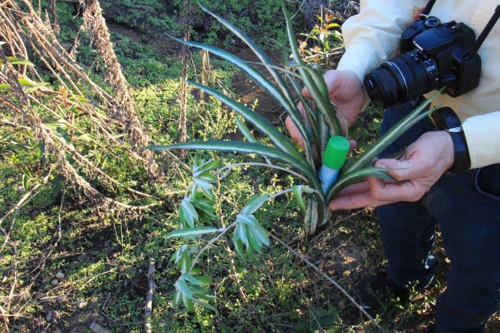 The last cache was also well hidden in the base of a bush enclosed in a silk spider plant.