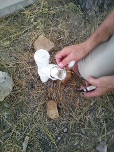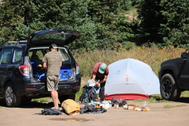 I don’t know if these two chaps were getting ready to leave for an extended hike or had just returned from one but they had lots of gear and containers they were sorting.