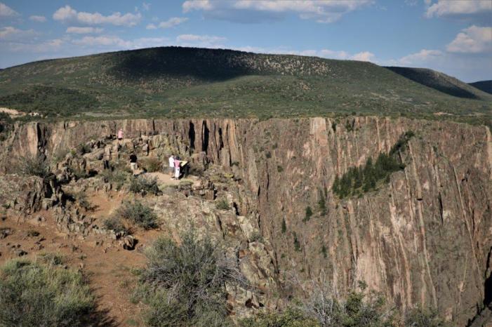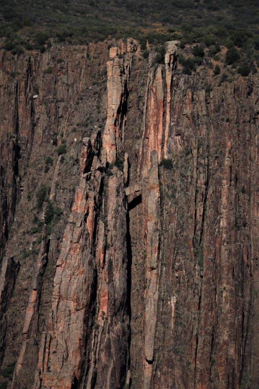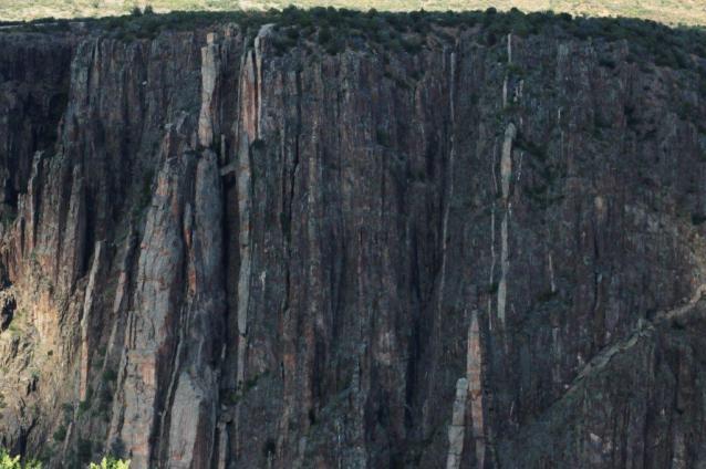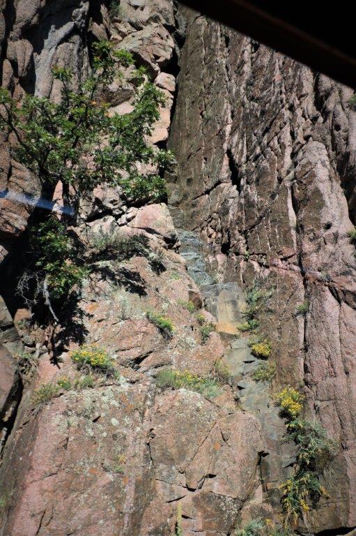 Ouray box canyon is a nesting site for the rare Black Swift. They fly thousands of miles to come back to these cliffs to nest. Most of them were gone but we could make out one flapping its wings beside a nest clinging to the far cliff wall. Unfortunately, since the rocks are almost black and it was ina crevass on the far side I couldn’t get a clear shot even with a very high ISO. I only put this photo in because it was there and so was I.