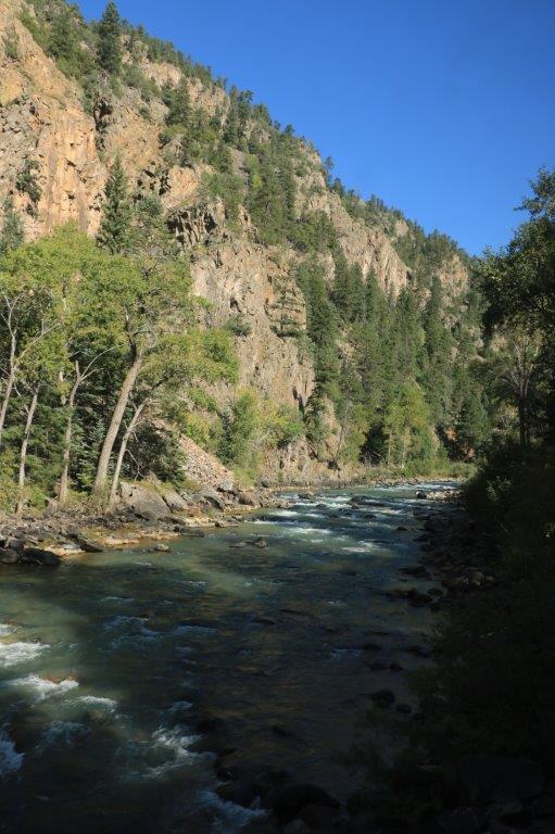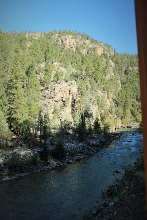 We continued through the mountains and into the Bear Creek Pass, which was cut out of solid rock at a cost of about $10,000 per mile in the late 1880’s.