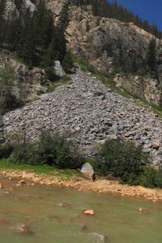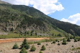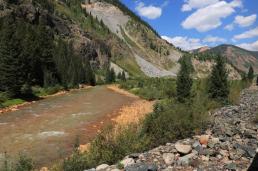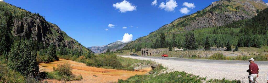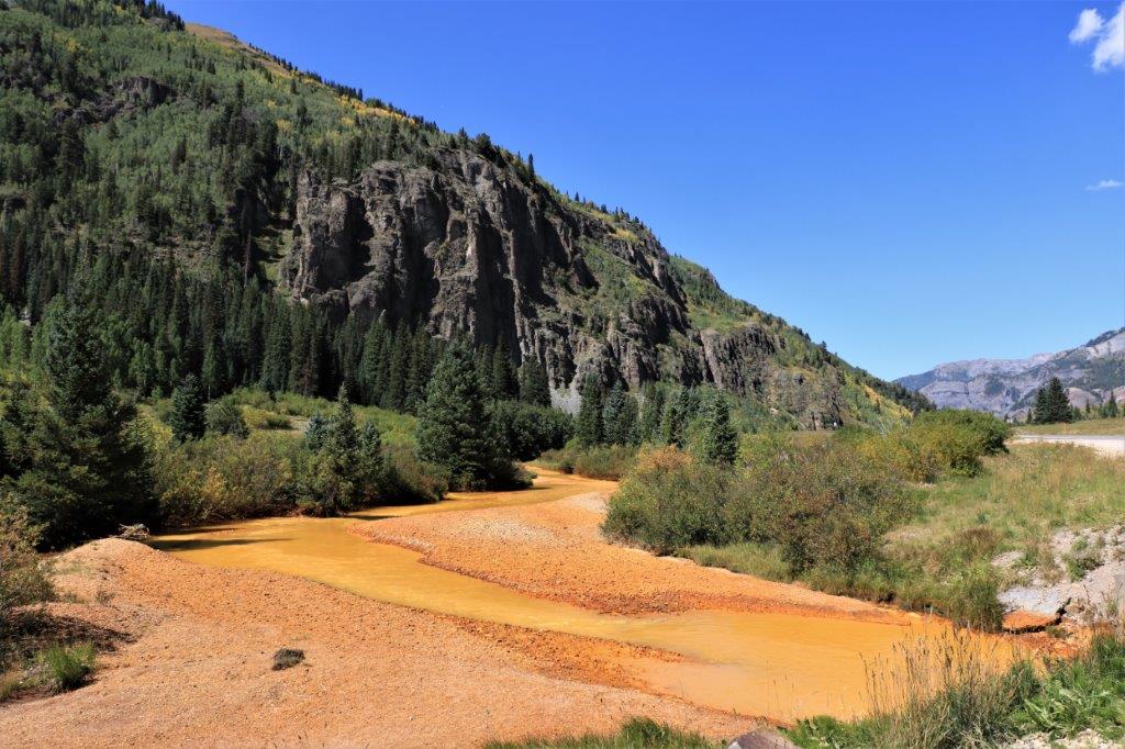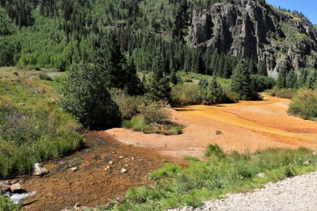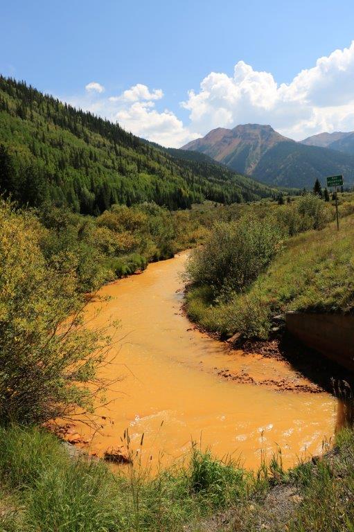 We had been getting small looks at a golden yellow creek that ws running beside the road. Finally there was a spot to pull over where the creek was near the road. This is why you do not drink the creek or river water in SW Colorado; it is full of all kinds of minerals and chemicals from mine tailings.