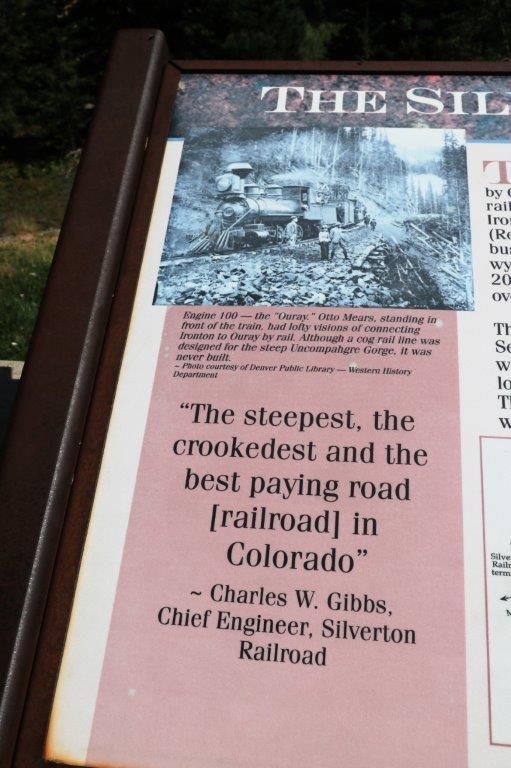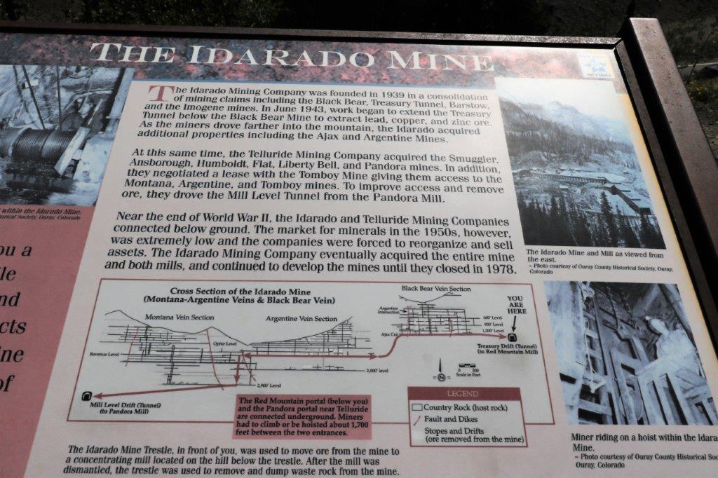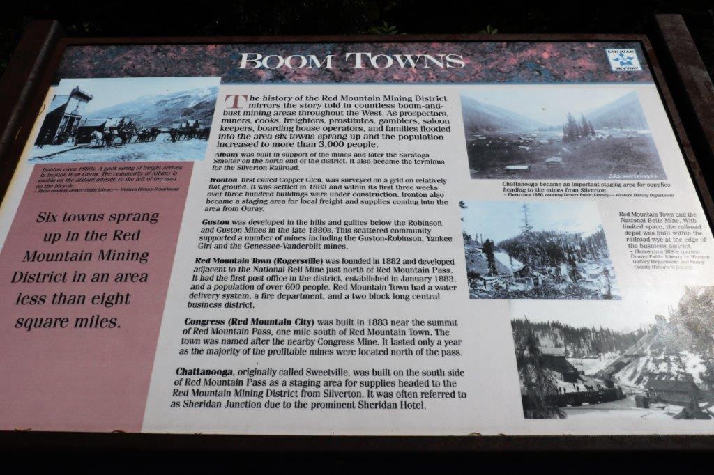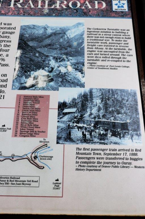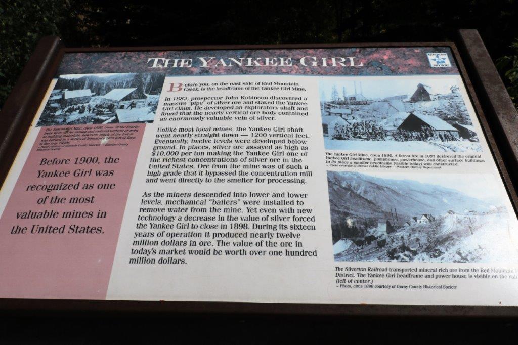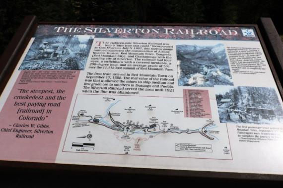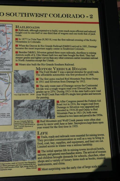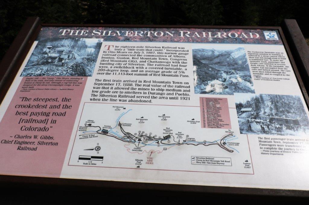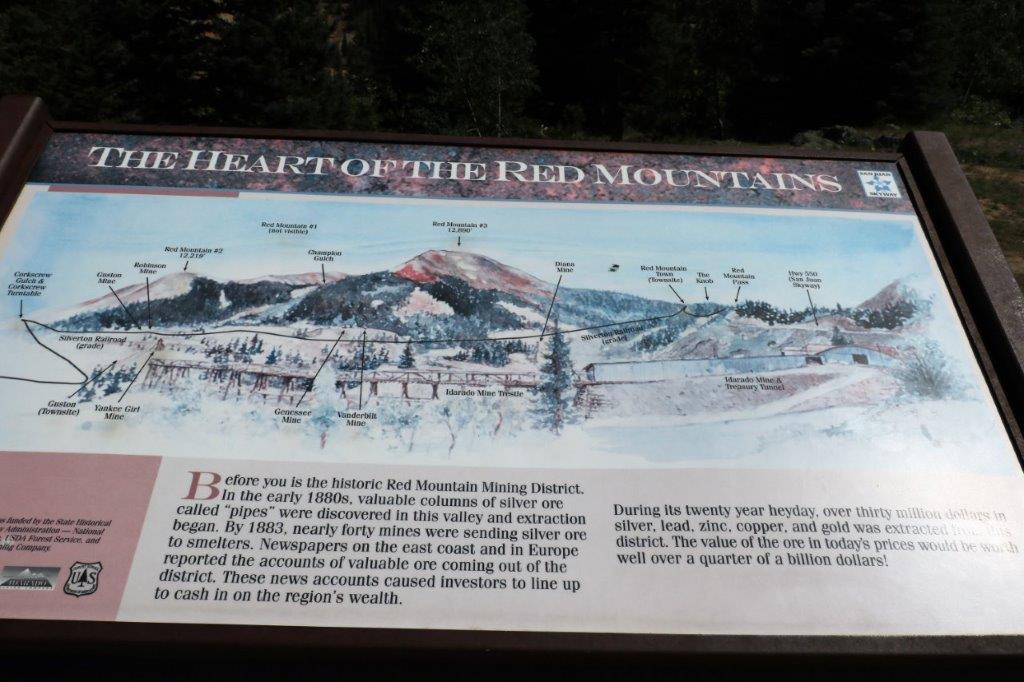 Not long after we negotiated all the curves we came to the Red Mountain Mines area. There was an information pull-out so we went to read all the placards.