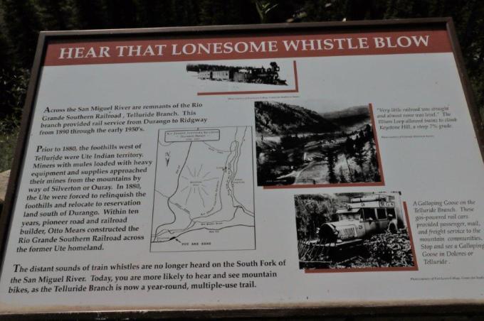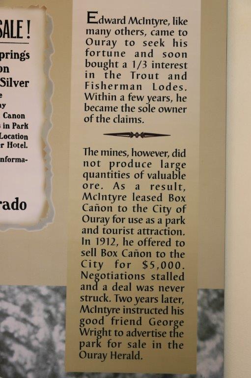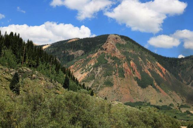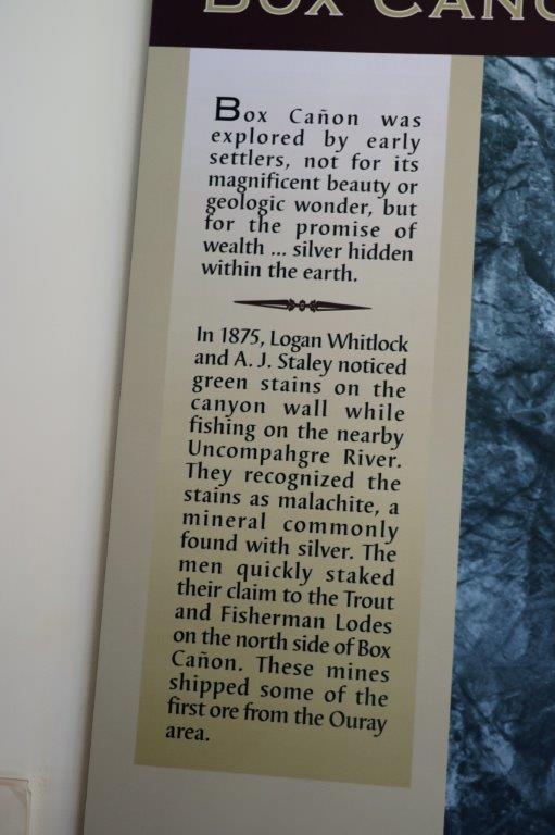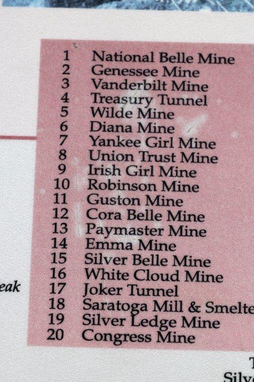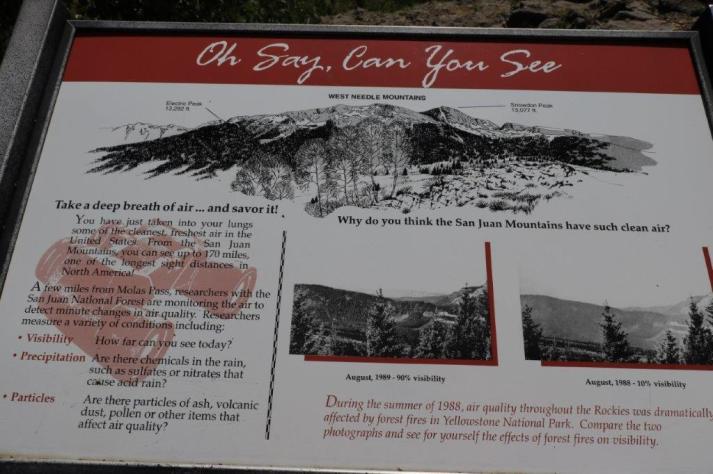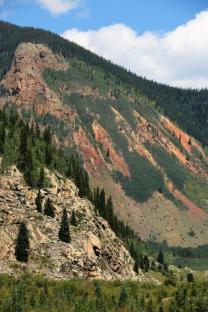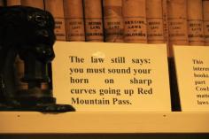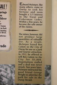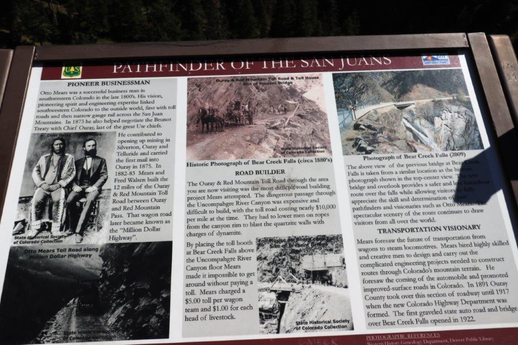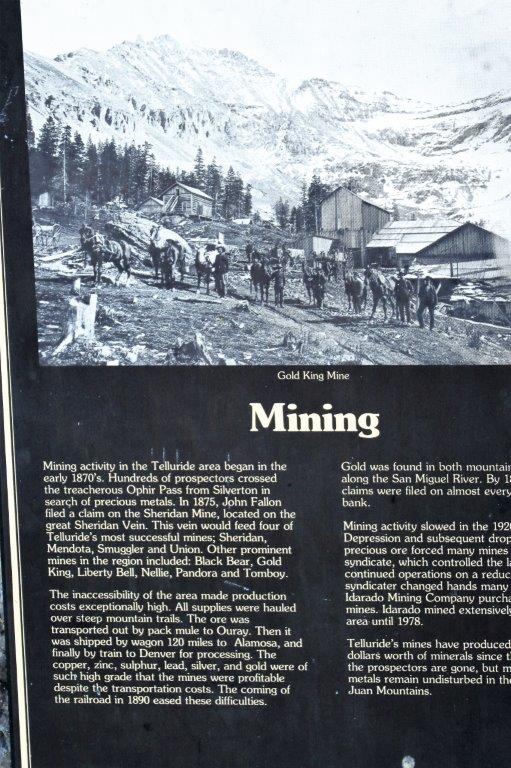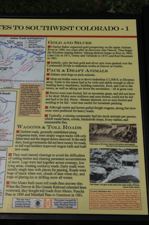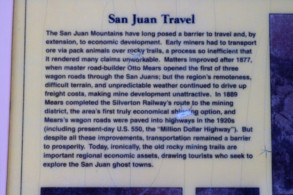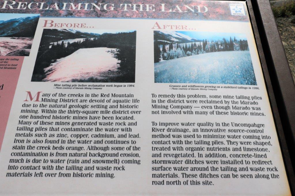 Not long after we negotiated all the curves we came to the Red Mountain Mines area. There was an information pull-out so we went to read all the placards.
