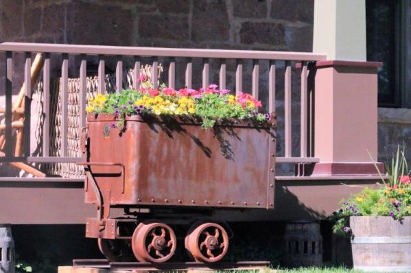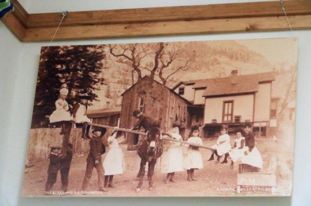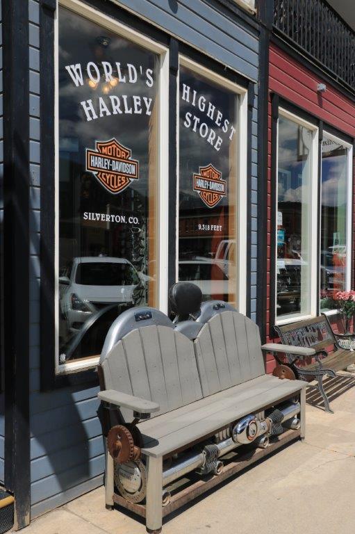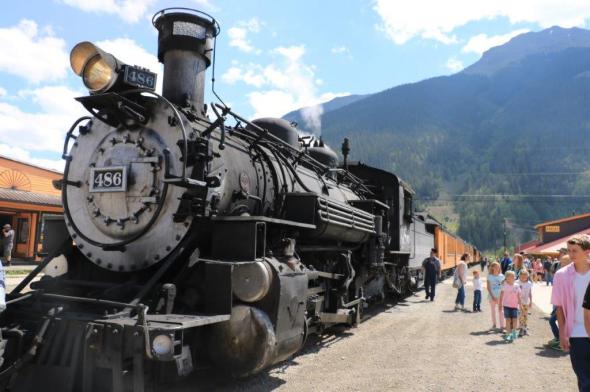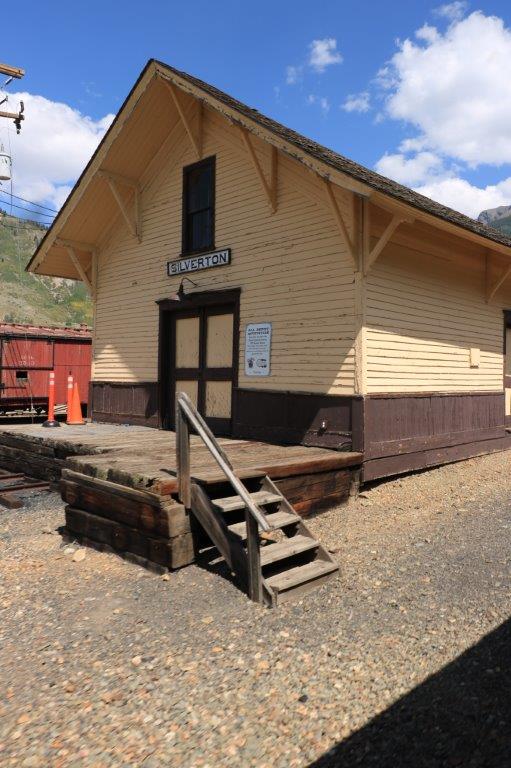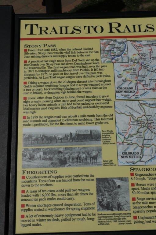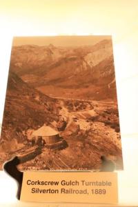 The steam train traveled 45 miles up to Silverton, the same distance as the highway even though the routes are so different. The train took 3 1/2 hours. We left Durango at 10 and arrived in Silverton at 12:30 – about an hour after the train arrived. We drove through the Coal Bank Pass. The pass is difficult to keep open in winter due to the 300+ inches of snow they get each year.