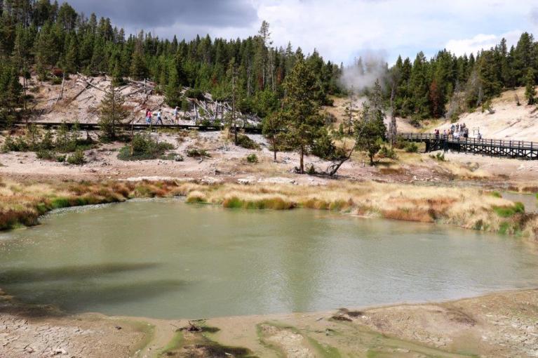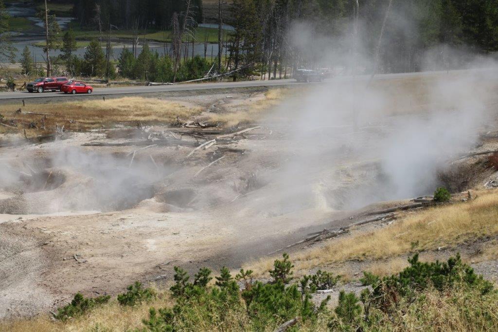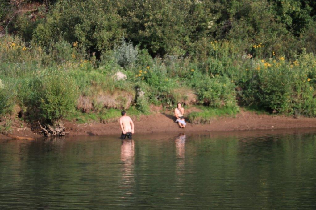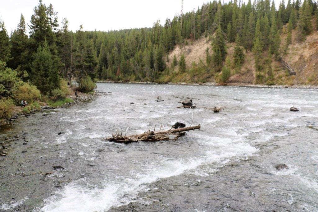 Beside the yellow Bear Creek on this side of the road was a clear stream flowing into it from the little lake just up a bank and a few yards away. (I wouldn’t drink it either)