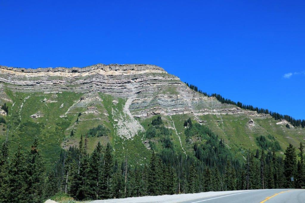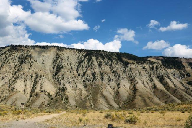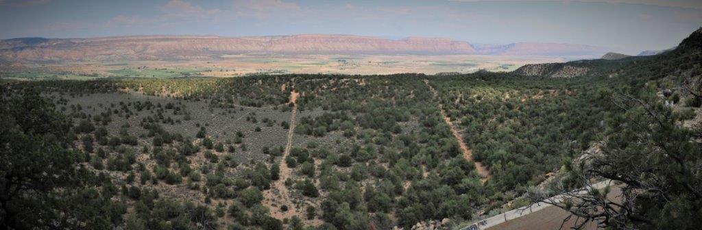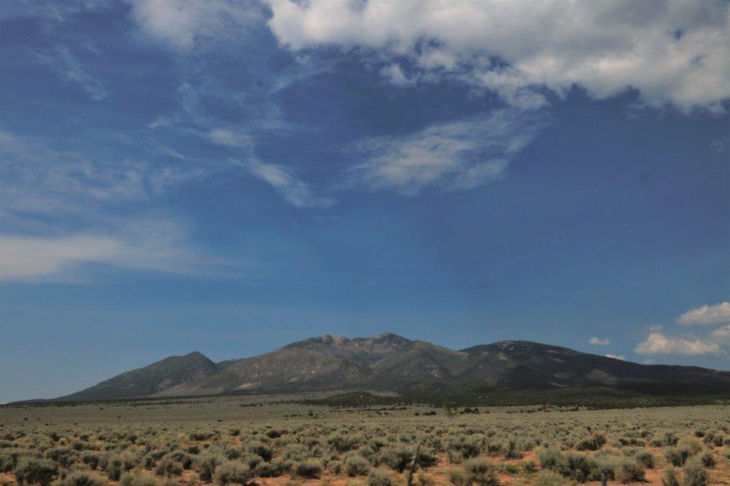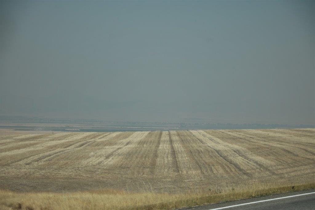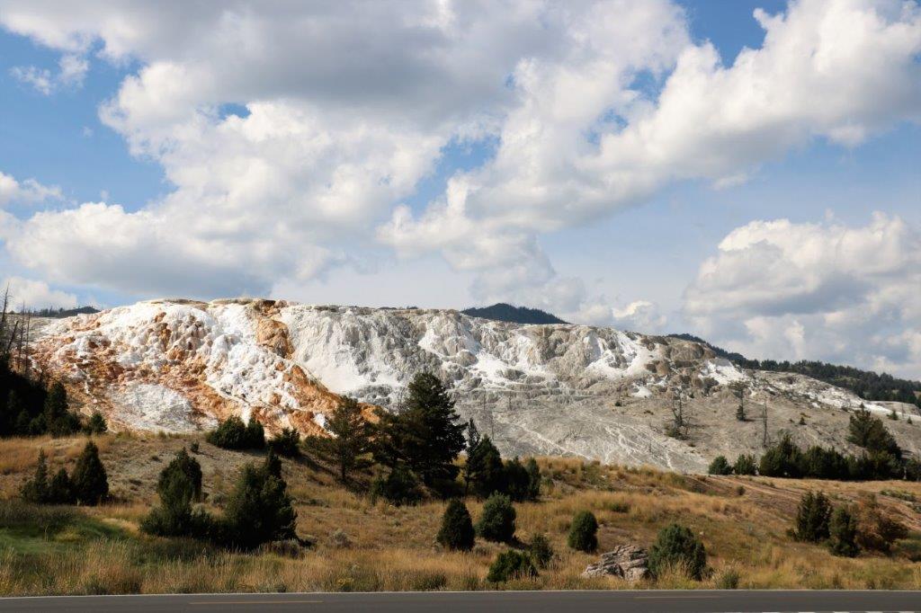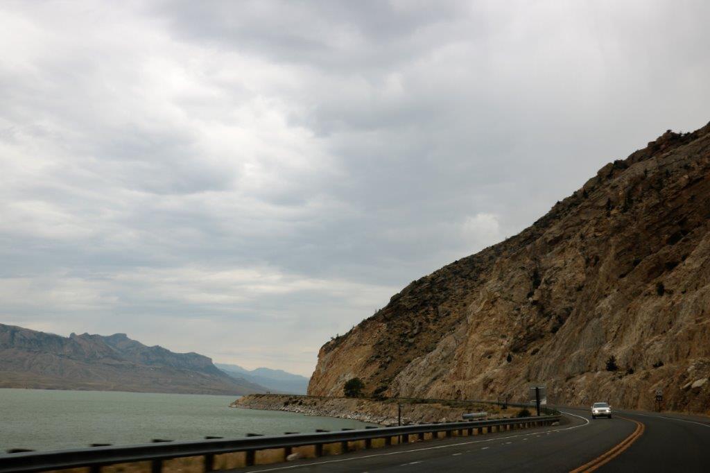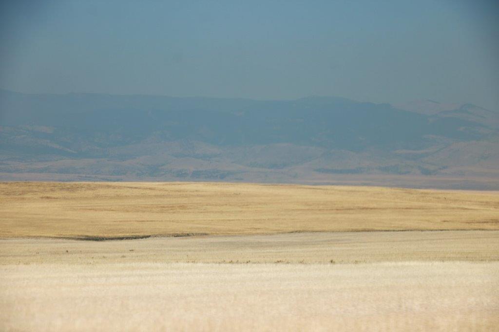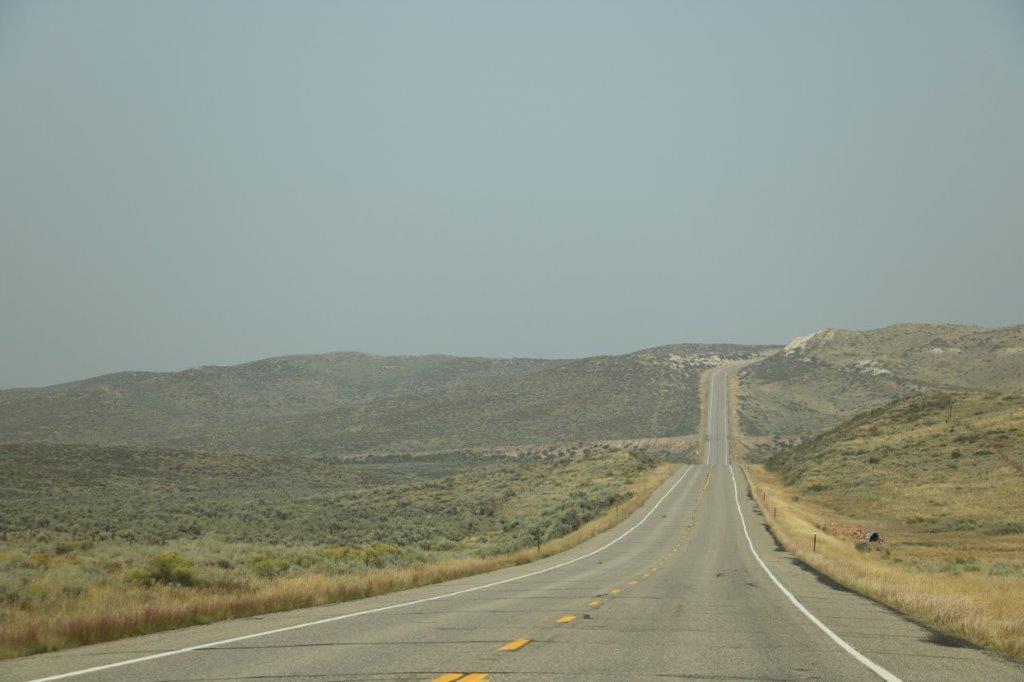 If you look closely you can see the cut of the road across the middle of the mountain in the background and on the left side about middle distance.