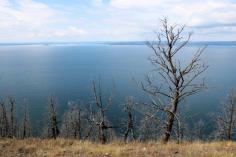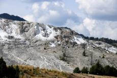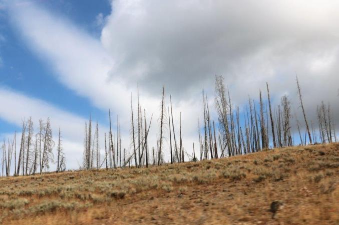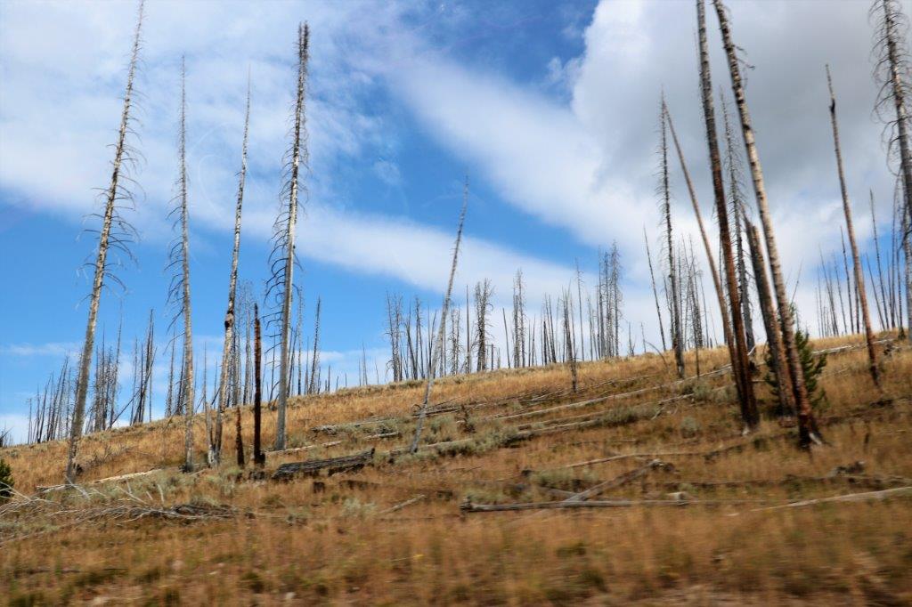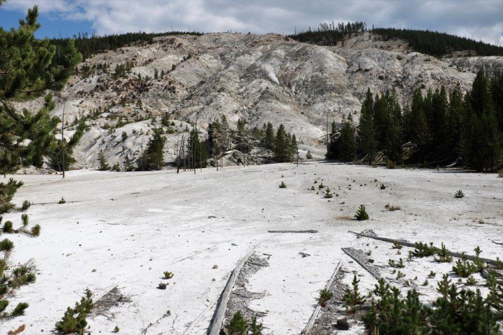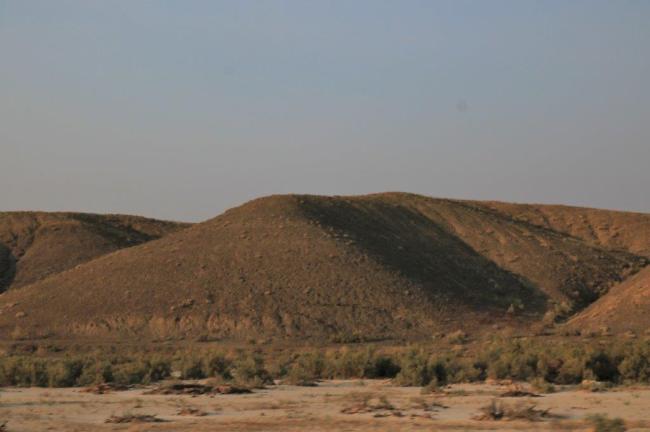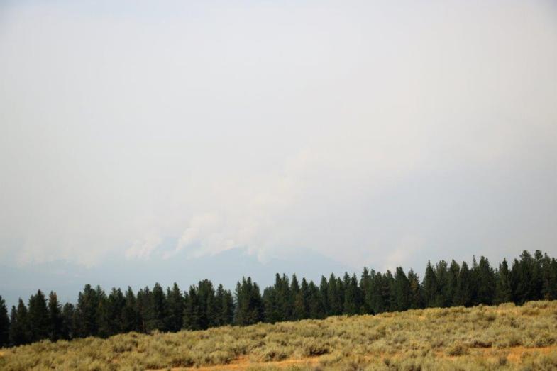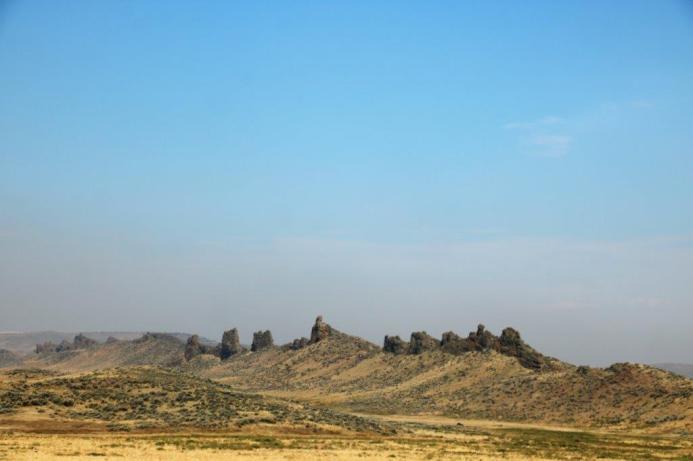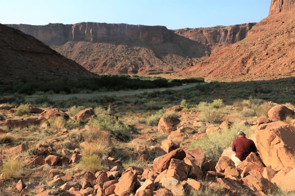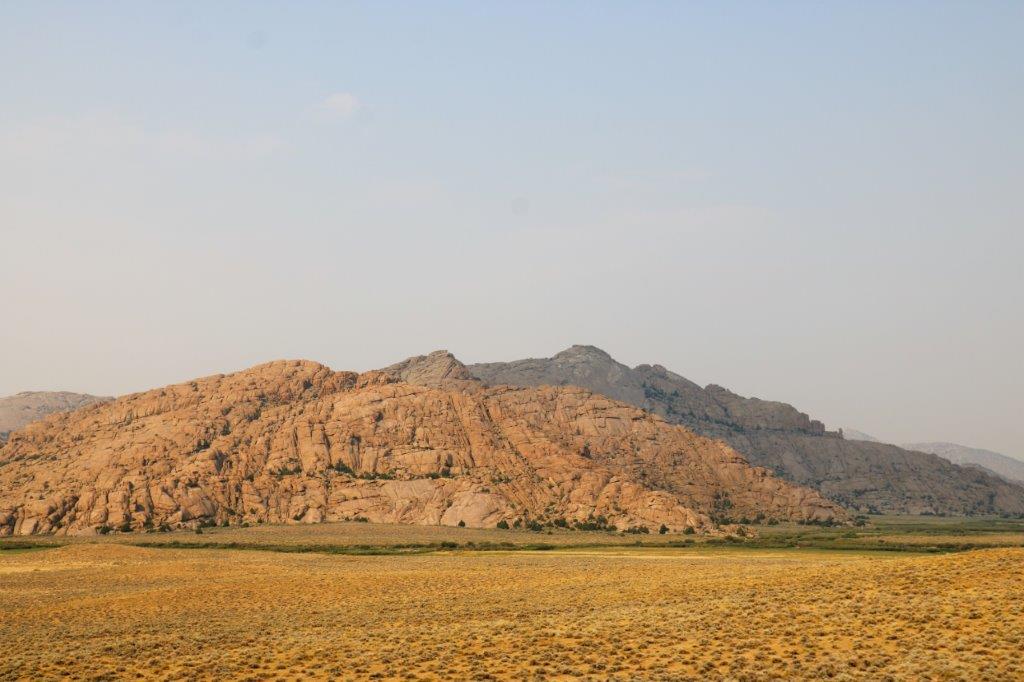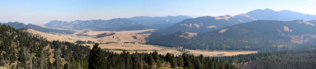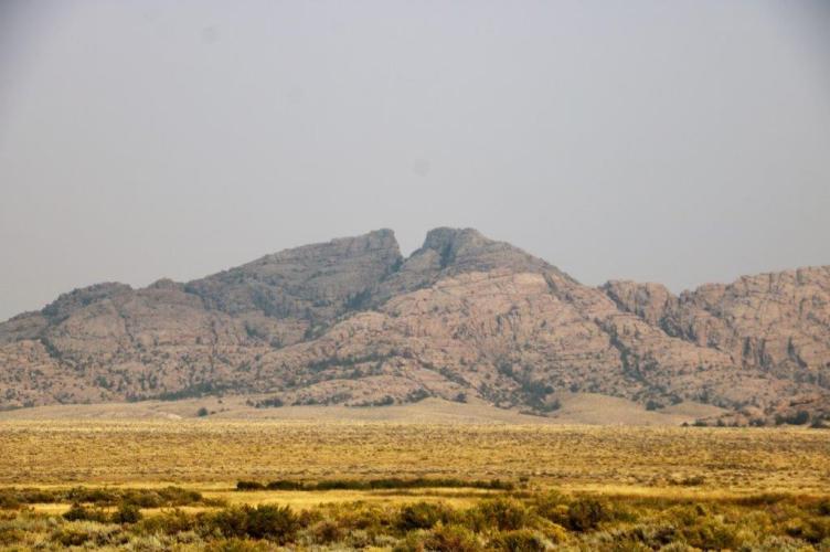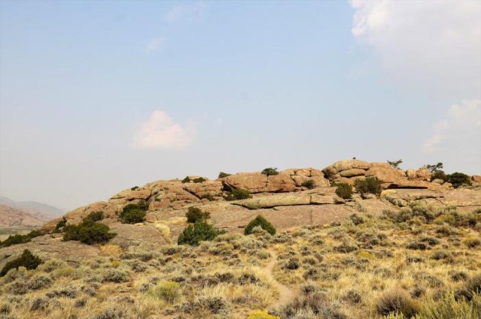 If you look closely you can see the cut of the road across the middle of the mountain in the background and on the left side about middle distance.