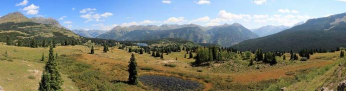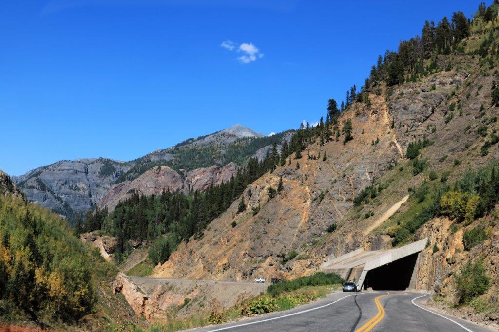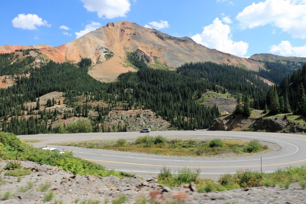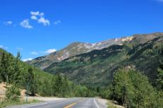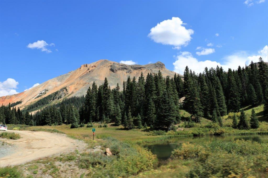 Highway 550 north takes you up through Silverton where we went on the steam train yesterday but the scenery is completely different and instead of being low following the course of the Animas River you go over the mountain on the other side of the river.