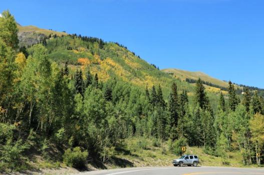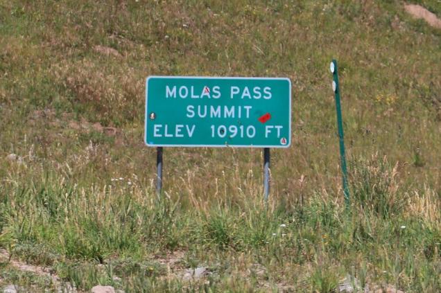 Now for the bad news – depending on your point of view. We had one of the most scenically beautiful days I have ever experienced. During all of our travels around the world – and especially around Canada and the USA – we have seen some glorious vistas. Today driving through the mountain passes of the San Juans from Durango to Montrose (a distance of just over 107 miles) we were constantly in awe at the beauty and grandeur we saw around every corner. Consequently I took more photos today than I did yesterday. And since I primarily write this blog for my own enjoyment and armchair travels for my sister I can put as many of them in my blog as I choose. (I did try to be a bit discriminating honest).
