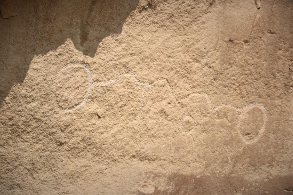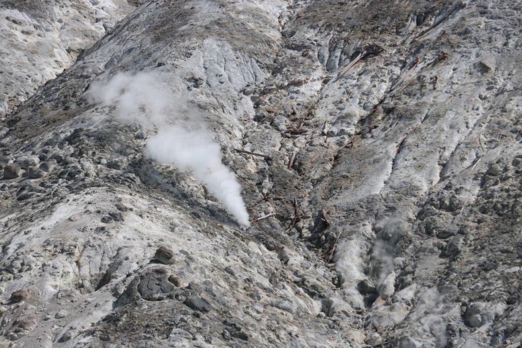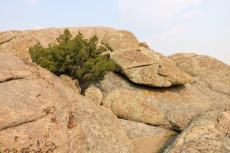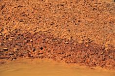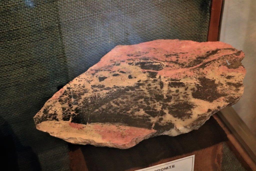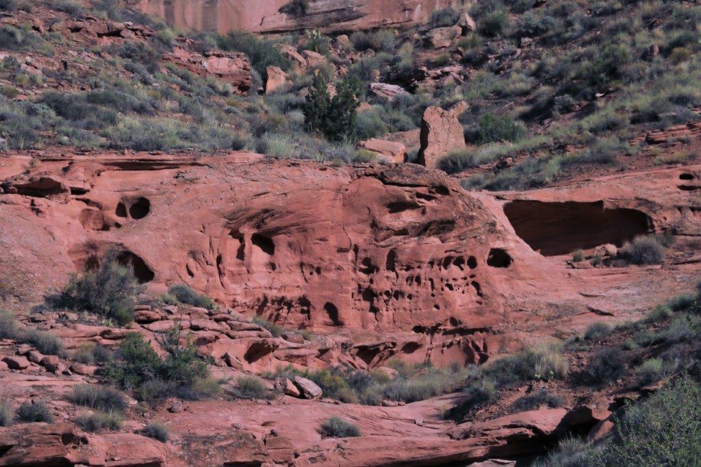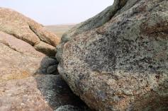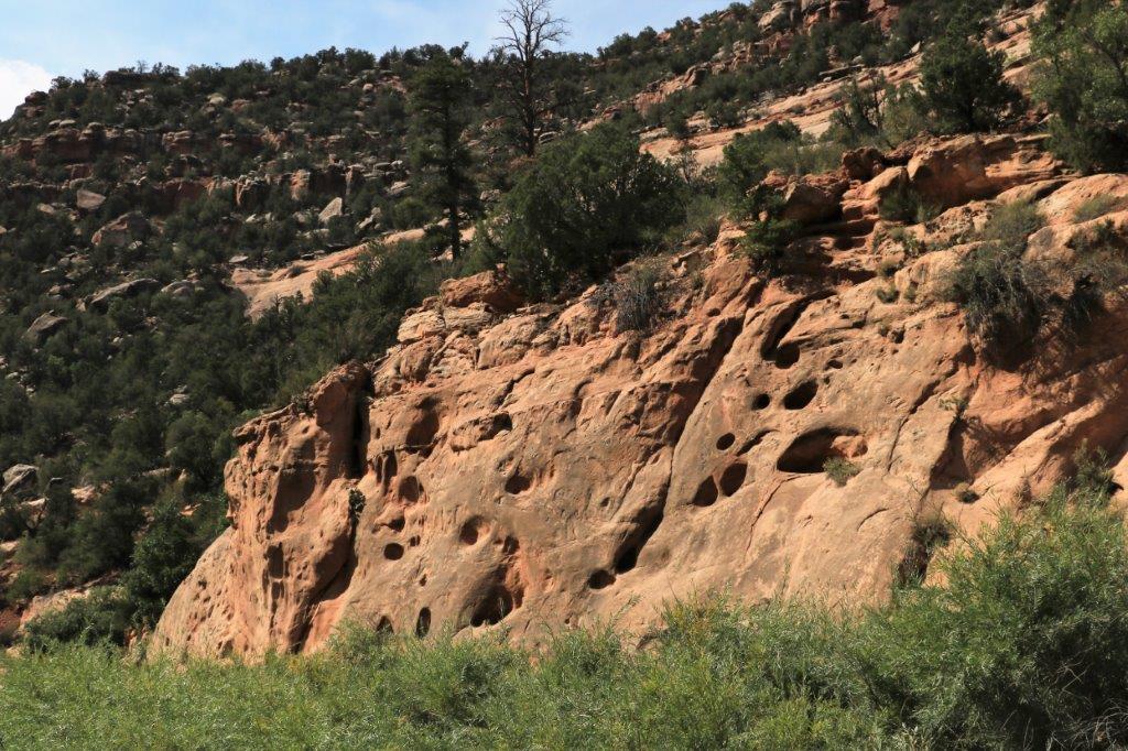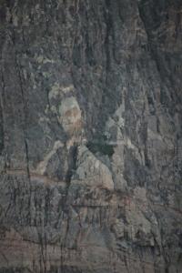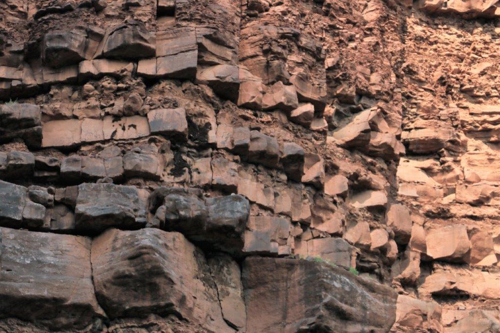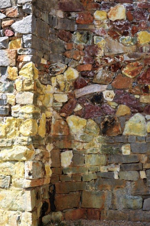 The rocks making up the wall at the shrine clearly show the results of all the minerals in the rocks.
