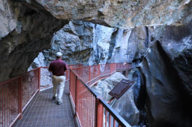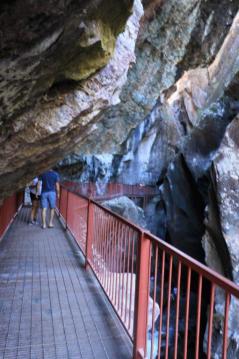 The box canyon is accessed by a raised walkway attached to the sheer cliff sides. Don’t forget to duck the low rocks.