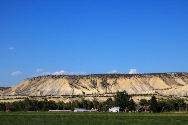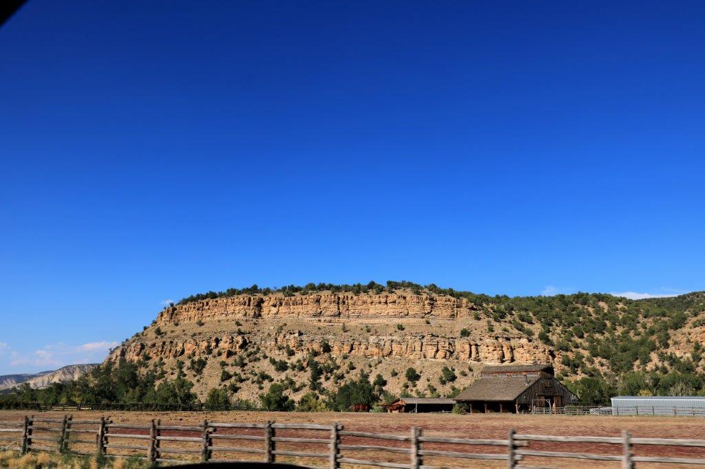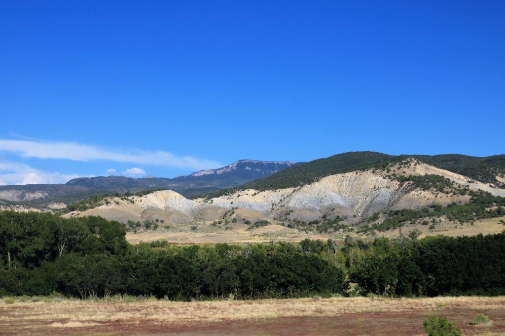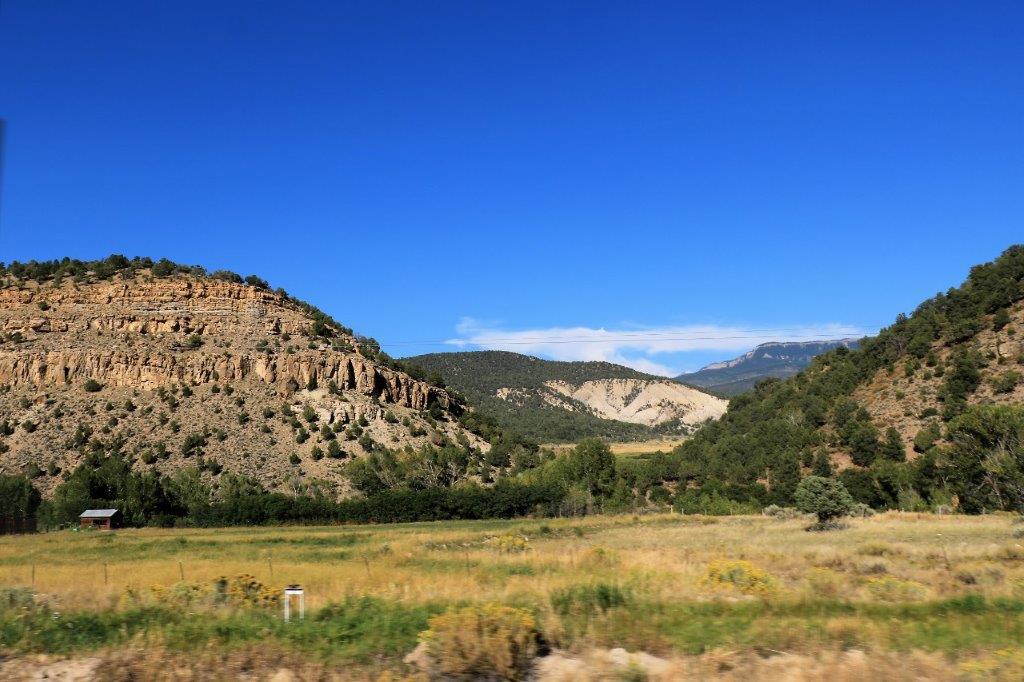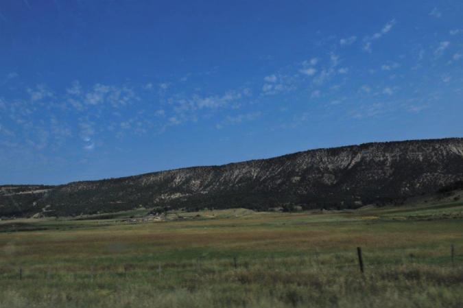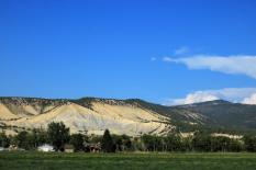 As we left Ouray and journeyed north to Montrose the rocky cliffs disappeared and were replaced by bluffs and valley bottom farm land.