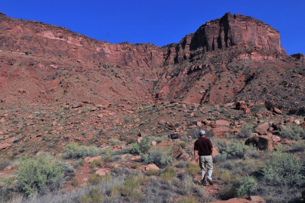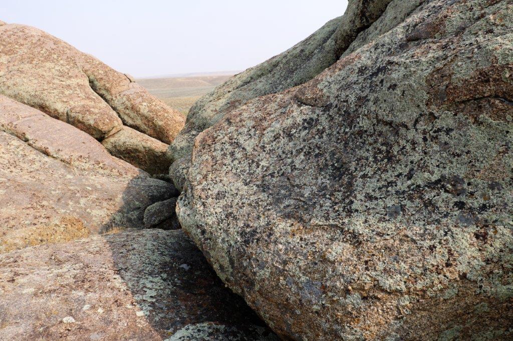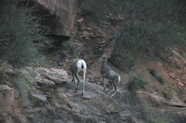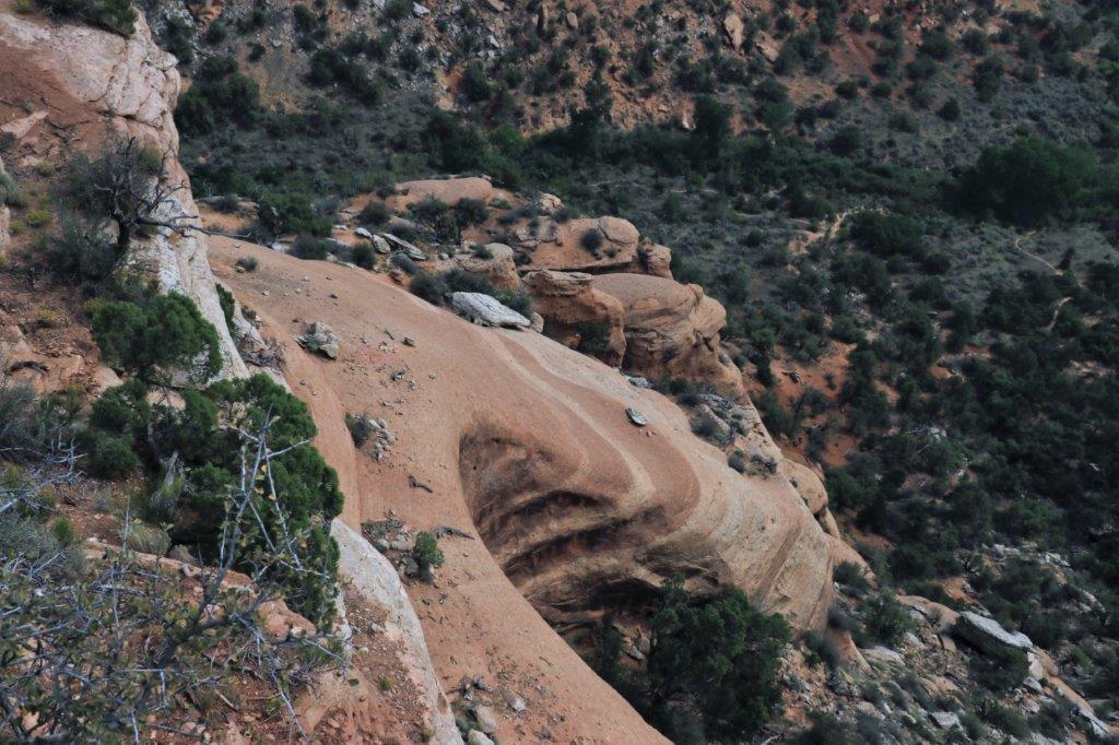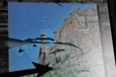 The photo on the right is the gap between the rock walls looking back down the canyon.