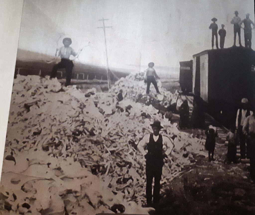 There were two theories about how so many bones ended up in such a muddled pile (the paleantologists think about 300 animals). One was a flash flood and the other was a disaster caused by so many large animals crossing a deep river at once and having many of them jostled off their feet and swept away. The majority of the bones belong to Centrosaurus, but there are also teeth from a flesh-eating dinosaur that broke off when they were feeding on the drowned ones. Many of the bones of the Centrosaurus show tooth marks and breaks.