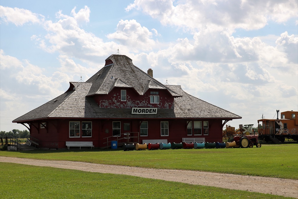 It is 188 km (118 miles) via Highway 3 from Winkler to Boissevain so we knew we had time to do an Adventure Lab in Morden before we left. Adventure Labs are a new element of geogcaching that take you to several places in a community or countryside where you find the answer to a question about what you have come to see. The Lab in Morden took us to see five of their old brick or stone buildings.
