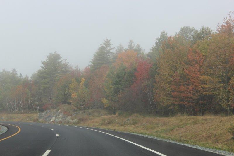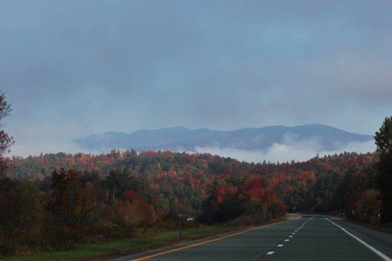 We woke this morning to fog.  It lifted after awhile and we continued through the colourful forests of New Hampshire and across the border to Vermont.