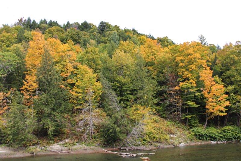 But, oh my goodness did that one day make a huge difference in the color on the trees.  Our 384 km drive today was a scenic delight!  Every turn in the road revealed more beauty.  We drove across the middle of Maine and about 1/2 across the thin top of New Hampshire.  We did no ‘tourist’ stops and only a couple of photo stops.