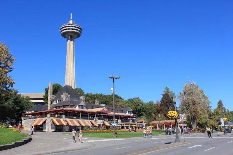 IMG_1343 IMG_1344 IMG_1350 IMG_1357 IMG_1351 IMG_1352The Skylon Tower is 160 meters tall (575 feet).  There are two observation levels – one above the other, one inside and the other outside behind large-link fencing.  There is a rotating restaurant at the top so you can see the town and both sets of falls while you dine.