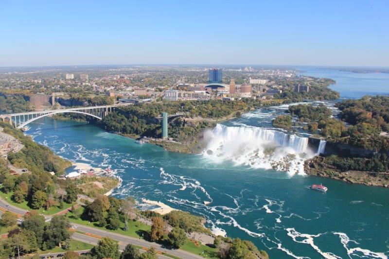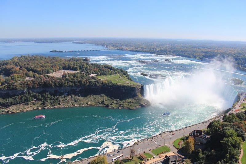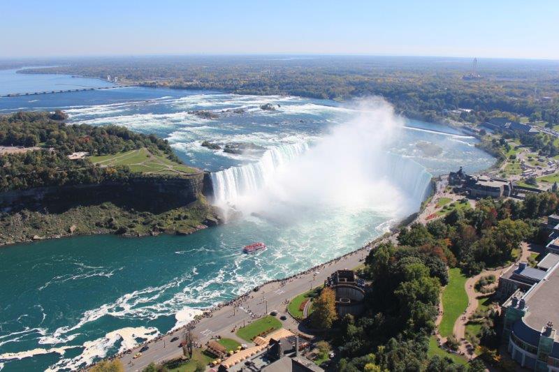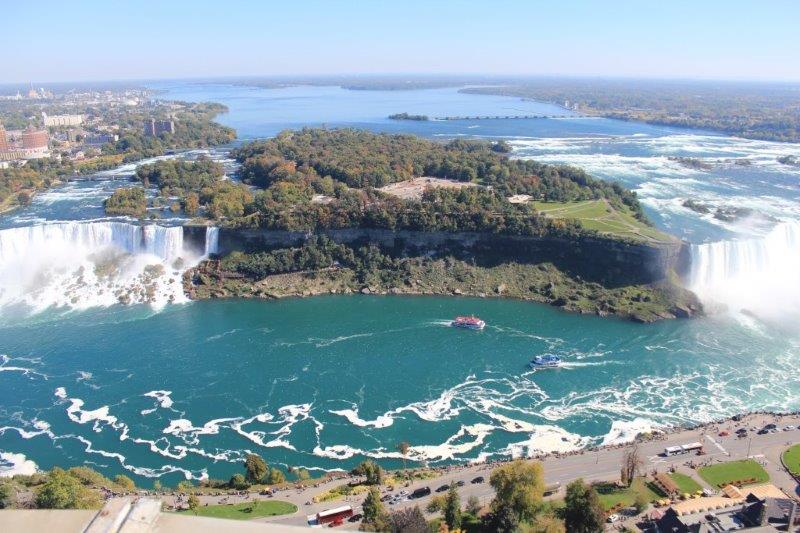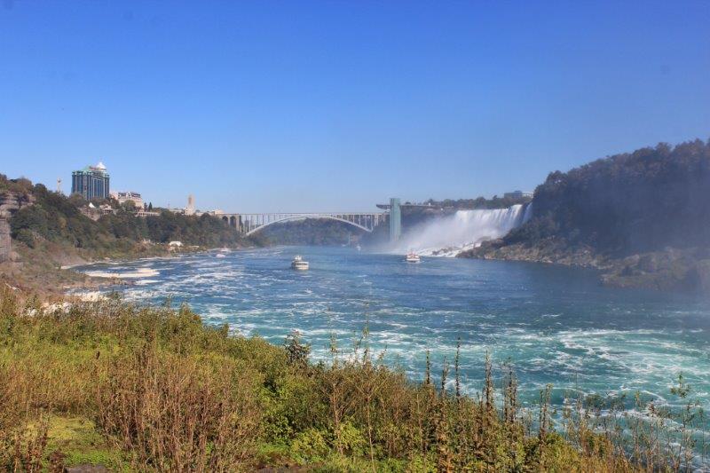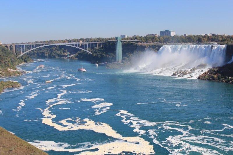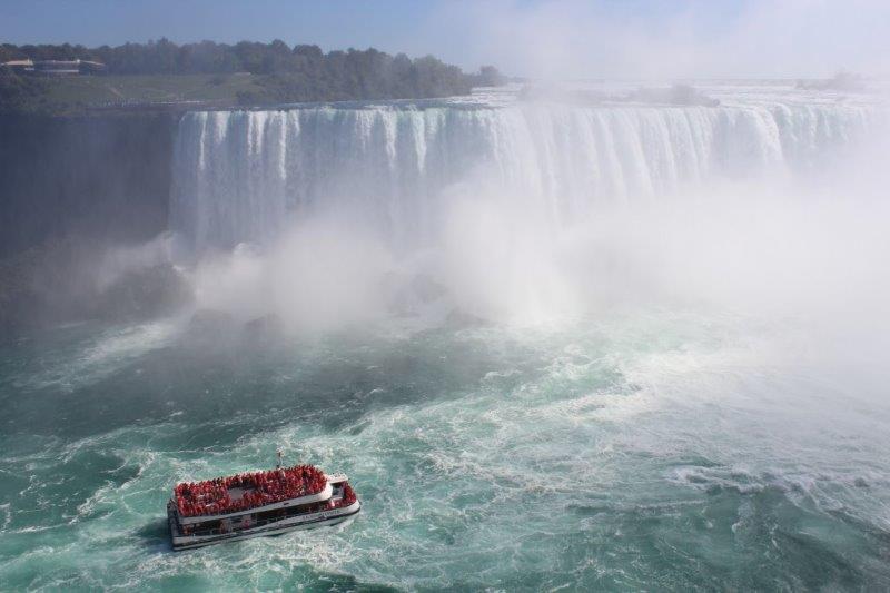Boat rides to the base of the falls run from both the American side and the Canadian side.  An Incline Railway will take you down the steep cliff-side to the street and boardwalk that runs along the riverside – but 140′ above it – and there are viewing towers on both sides.  This natural wonder has been self-supporting – meaning no tax dollars needed – since 1885.