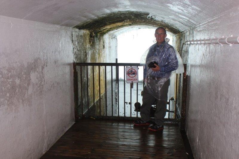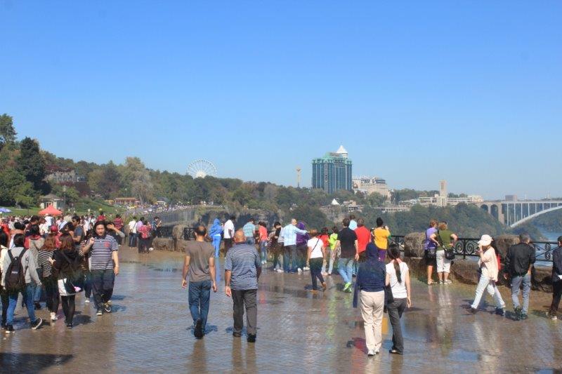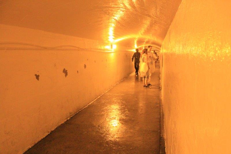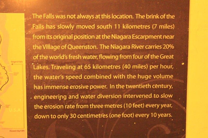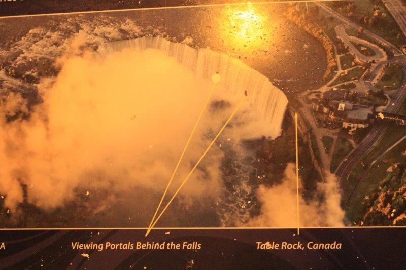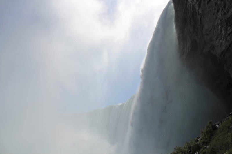 IMG_1310 IMG_1311 IMG_1314The Journey Under the Falls takes you by elevator to the base of the Horseshoe Falls.  There are three tunnels with openings to the falls.  One leads to two viewing platforms; the lowest being 26 ft above the river and the other two tunnels are openings behind the cascade taking you almost 1/2 way round the horseshoe, accompanied by very loud thundering water!