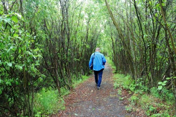 There was a geocache hidden off into the scrub behind the Arctic Circle sign. Everything was still wet from the rain and it took us awhile to find it so our shoes and pant legs were a tad wet by the time we got back.
