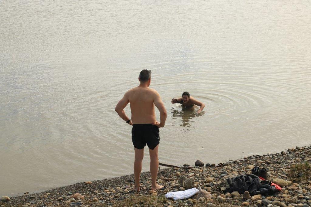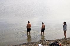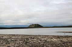 Thirty km from Midway Lake is the Peel River where the ferry comes to whichever side of the river the ferryman sees a car waiting and takes you across.