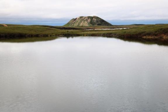 When you leave the Eagle Plains hotel/campground/gas station – population 9 – you enter the next ecoregion on the Dempster Highway. The road drops down to cross a glacial outwash channel of what was once a mighty river, but is now just a small stream, even though it is still called the Eagle River. The Richardsons are a mountain range to the east of the road that we cross at the Northwest Territories border. This ecoregion is called the British-Richardson Mountains ecoregion.